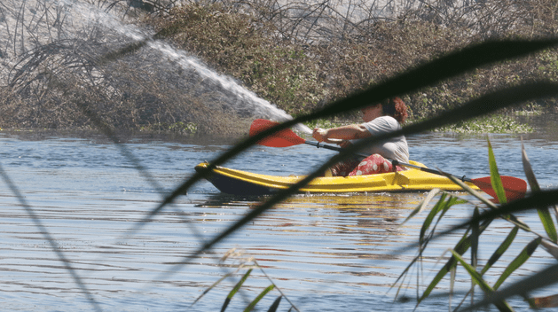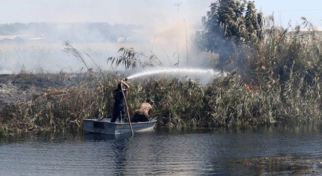 ANTALYA’da Düden Çayı kanal boyundaki sazlıkta çıkan yangını, bölge halkı, kano ve tekneden hortumla su sıkarak söndürmeye çalıştı. İtfaiyecilerin müdahale ettiği yangın, yaklaşık 2 saatte söndürüldü.
