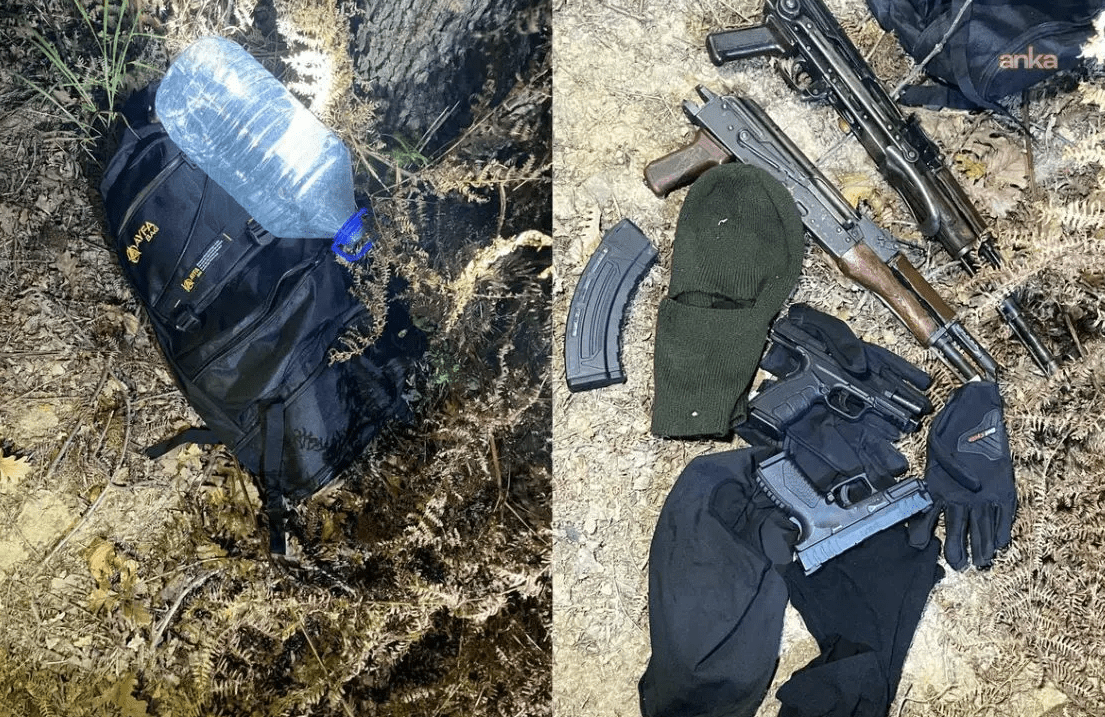Saldırganların cinayette kullandığı silahların ve teçhizatın bulunduğu anlara ilişkin görüntüler yayımlandı. Ormanlık alana gizlenmiş çanta içerisinden iki Kalaşnikof ve iki tabanca olmak üzere toplam dört silah ele geçirildi. Saldırganları kullandığı kar maskesi ve eldiven teçhizatlar da çantadan çıktı.